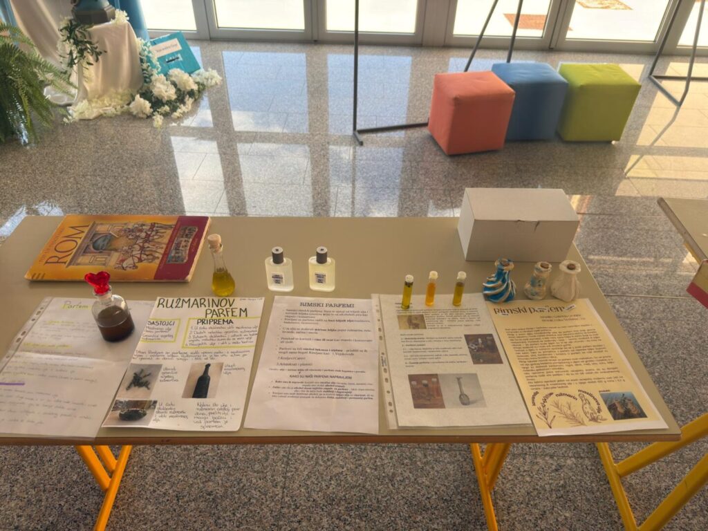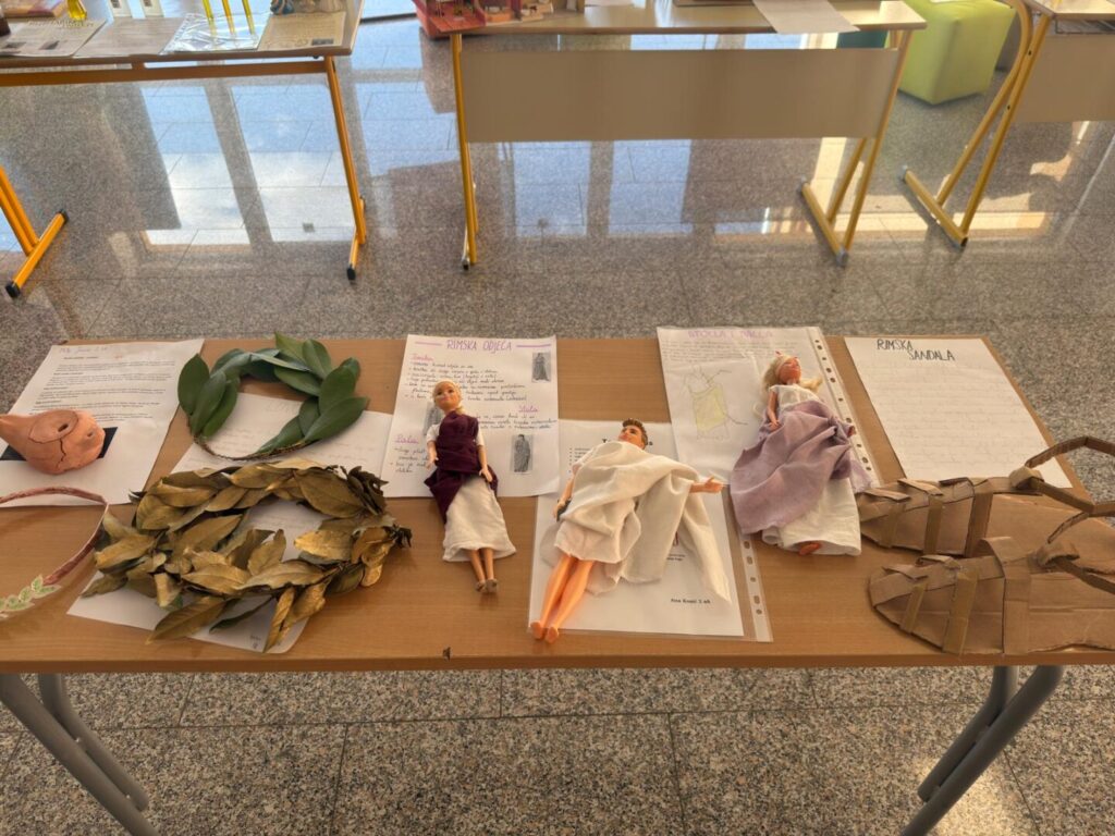 Rezultate su predstavili na plakatima te brojnim uporabnim predmetima iz rimska svakidašnjice. Izložili su makete rimskih vila s prikazom unutrašnjosti i dvorišta, rimskog hrama, mozaike, voštane pločice, oružja (mačeve, štitove, koplja, katapult), oruđa, odjevne predmete (toge, tunike, stole), obuću (sandale), domišljato izrađene različitim materijalima i tehnikama. Učenici su se okušali i u izradi parfema i nakita (ogrlice, naušnice, prstenje, broševi), a na temelju prikupljenih recepata pripremili su brojna tradicionalna jela (pogače, kaše, namaze, slastice…) koja su tijekom odmora kušali svi učenici i djelatnici škole. Održana je i radionica izrade rimskih frizura. Predstavljanje je obogatila i projekcija videouradaka kojima su učenici snimali postupke i tijek izrade predmeta ili pripreme jela.