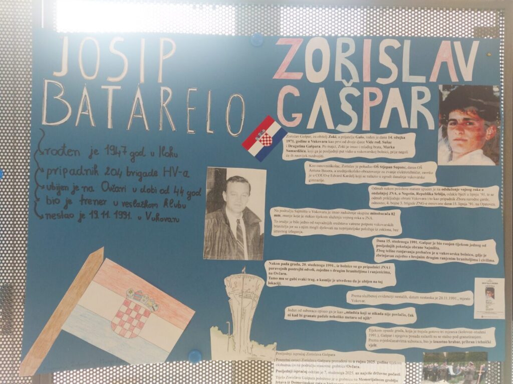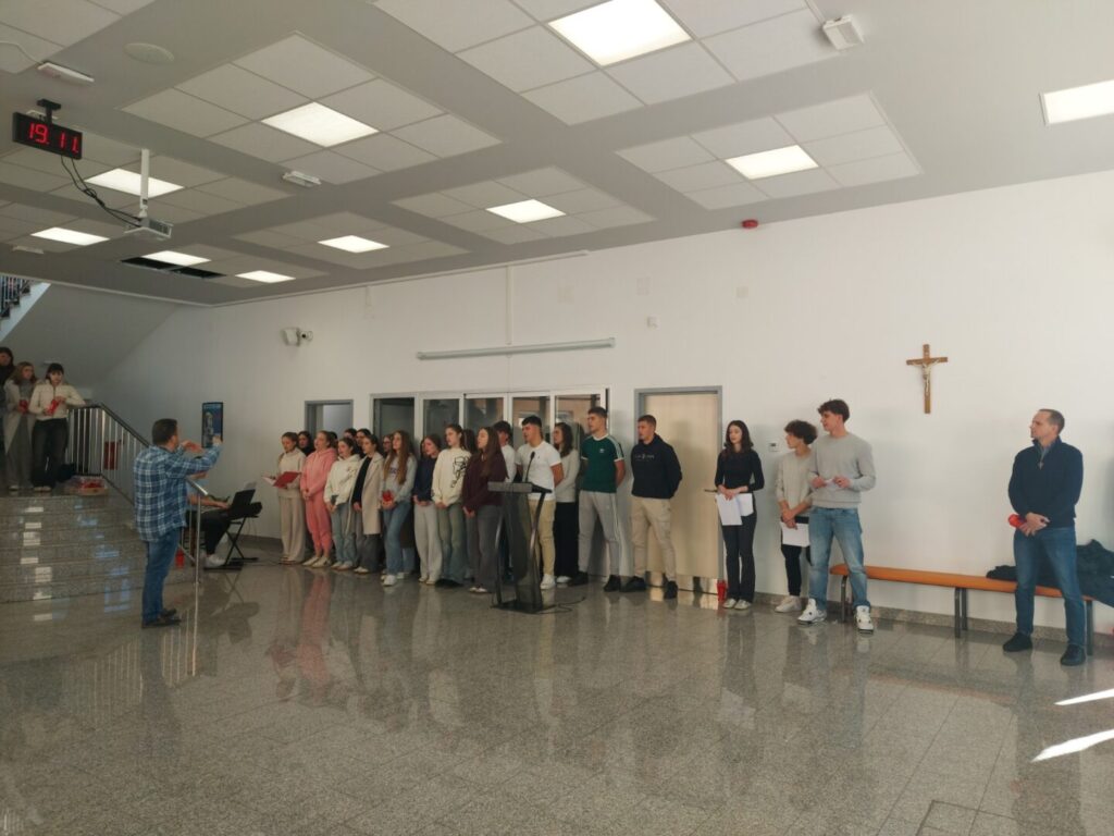 Navik on živi ki zgine pošteno moto je ovogodišnjeg meditativno-poetskog programa kojim smo 19. studenoga u našoj školi obilježili Dane sjećanja na žrtvu Vukovara. Cilj nam je bio odati počast svim sudionicima obrane ovoga grada – simbola hrvatske slobode. Prisjetili smo se svih poginulih, nestalih, nasilno odvedenih i mučki ubijenih te umrlih hrvatskih branitelja i civila koji su svoj život dali za slobodnu Hrvatsku. Njihova imena, učenici i djelatnici škole ispisali su na plakatima koji su bili izloženi u školskom prostoru. Svaki je učenik i djelatnik molio upravo za one poginule, ubijene i nestale branitelje i civile čija je imena zapisao i tako, iako se nekima od njih možda još ne zna za grob, postao njihov živi spomenik. Povijesni dio bitke za Vukovar učenici su proučavali na satovima povijesti te su o tome izradili plakate pod mentorstvom profesorice Linde Maraš Krapić. Tijekom meditativno-poetskog programa koji su vodili učenici četvrtih razreda Lucija Borovac, Jakov Butković, Mauro Muškardin i Franjo Sušanj molili smo da nas Gospodin učini oruđem svoga mira te da umjesto mržnje, uvrede, očaja i tame budemo nositelji ljubavi, praštanja, nade i radosti. Obilježavanju sjećanja na žrtvu Vukovara pridružio se i školski zbor koji je pod vodstvom profesora Hrvoja Bugera otpjevao pjesmu Anima Christi. Zajedničku molitvu predvodio je don Vinko Rogalo. Nakon molitve učenici i djelatnici zapalili su svijeće u Vukovarskoj ulici u spomen na sve vukovarske branitelje i sve vukovarske žrtve. Ovogodišnji program osmisle su profesorice Ana Pelčić i Mirjana Baždarić.