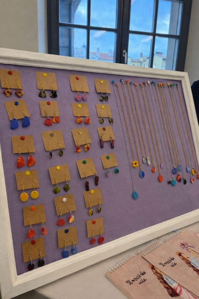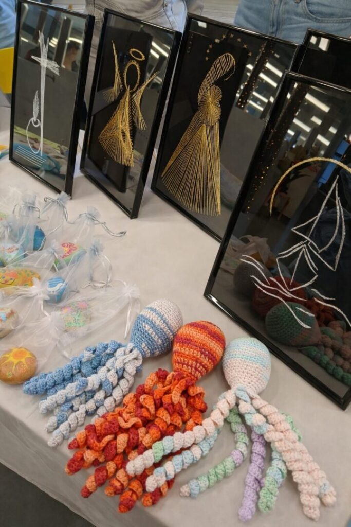 Svaki srednjoškolski štand donio je drugačiju priču i kreativnu ideju, a posjetitelji su mogli razgledati i kupiti raznolike predmete izrađene u školskim radionicama, kao što su: ukrasne svijeće, božićne kuglice, keramički i drveni ukrasi, privjesci i nakit, vezene slike…